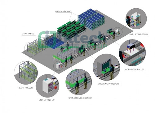 Được sử dụng trong các nhà máy lắp ráp linh kiện ô tô, giúp việc thao tác từng công đoạn dễ dàng hơn. Nhờ hoạt động liên tục nên băng tải này tạo hiệu suất công việc cao, rút ngắn thời gian trong từng khâu lắp đặt.