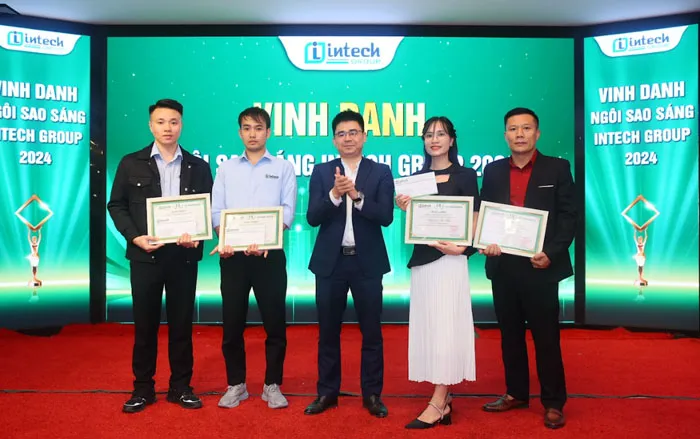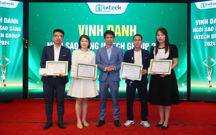 Một trong những khoảnh khắc đáng nhớ nhất của buổi lễ là phần vinh danh những tập thể và cá nhân xuất sắc. Các giải thưởng như “Tập thể xuất sắc” và “Ngôi sao sáng Intech” đã được trao cho những gương mặt tiêu biểu, đại diện cho tinh thần làm việc tận tụy và sáng tạo. Những cá nhân được vinh danh là minh chứng sống động cho giá trị cốt lõi của Intech: mỗi nỗ lực, dù lớn hay nhỏ, đều góp phần quan trọng vào thành công chung.